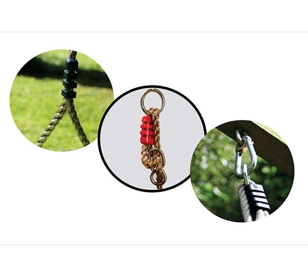 Lesena gugalnica je opremljena z PP vrvjo dolžine 1,75 m, O-obročki in nastavkom osmico (za nastavitev višine)